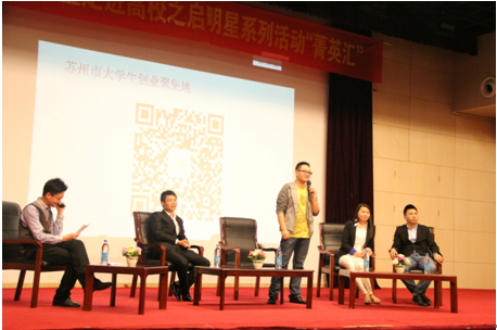 “菁英匯”第三場(chǎng)活動(dòng)走進(jìn)了蘇州工業(yè)職業(yè)技術(shù)學(xué)院。“90后創(chuàng)業(yè)怎么了!,”我們唯一的本錢(qián)就是青春“,”夢(mèng)想讓我與眾不同,奮斗讓我改變命運(yùn)“等一句句恣肆飛揚(yáng)的青春宣言在蘇工院的叢薈廳回響,本次活動(dòng)圍繞”青春“和”草根“兩個(gè)話題,采用臺(tái)上臺(tái)下互動(dòng)的形式開(kāi)展,2015年4月23日午后會(huì)場(chǎng)座無(wú)虛席。