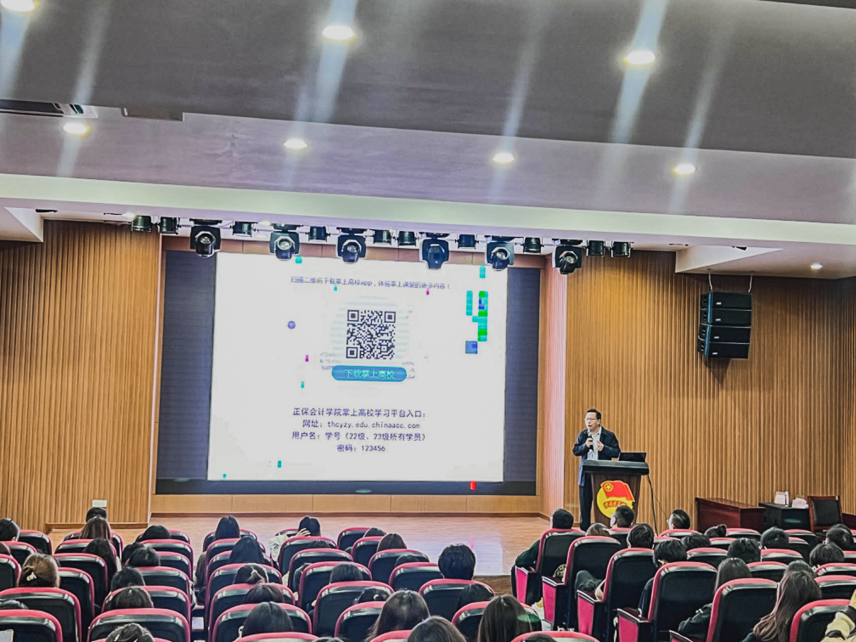 講座尾聲,為提升正保會計學(xué)院數(shù)智與移動化學(xué)習(xí)體驗(yàn),豐富學(xué)習(xí)方式與內(nèi)容,施院長還就正保為會計學(xué)院學(xué)生提供的移動學(xué)習(xí)平臺、在線考培課程體系及正保學(xué)習(xí)樂園進(jìn)行發(fā)布: