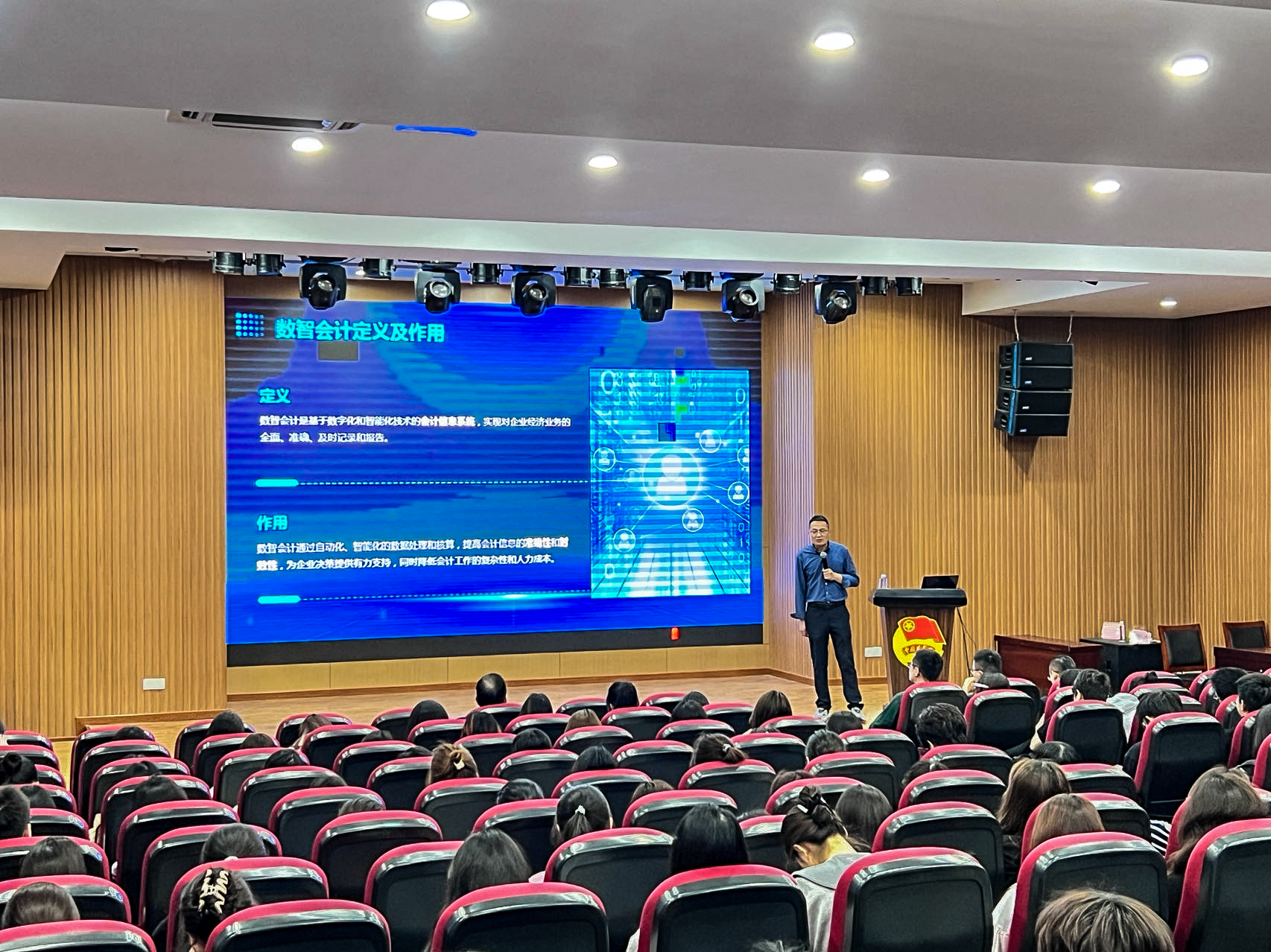 隨著現(xiàn)代電子信息技術(shù)的發(fā)展,人工智能與區(qū)塊鏈技術(shù)在會計領(lǐng)域的融合應(yīng)運(yùn)而生,為使學(xué)生更好地了解數(shù)字經(jīng)濟(jì)背景下數(shù)智會計的發(fā)展趨勢,幫助學(xué)生合理規(guī)劃大學(xué)學(xué)業(yè),2024年4月16日下午,正保會計學(xué)院在太湖學(xué)院活動中心成功舉辦“數(shù)字經(jīng)濟(jì)背景下數(shù)智會計的發(fā)展之路”講座活動。講座邀請了具有豐富教學(xué)經(jīng)驗(yàn)和業(yè)內(nèi)實(shí)踐經(jīng)驗(yàn)的復(fù)合型導(dǎo)師仲偉駿教授作為主講進(jìn)行分享。