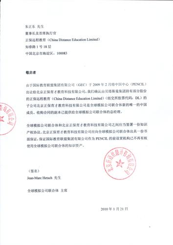 2010年1月21日,北京正保育才教育科技有限公司獲得全球模擬公司聯(lián)合體的正式授權(quán)。授權(quán)表明:北京正保育才教育科技有限公司是全球模擬公司聯(lián)合體的中國成員。