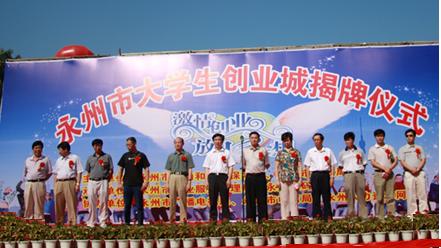 7月8日上午,由永州市勞動(dòng)保障局、永州市財(cái)政局主辦,市就業(yè)服務(wù)管理局和永州數(shù)碼港承辦,市廣電局、市電信公司、市人力資源網(wǎng)協(xié)辦的大學(xué)生創(chuàng)業(yè)城在永州市數(shù)碼港舉行了揭牌儀式,這標(biāo)志著我市大學(xué)生創(chuàng)業(yè)城正式運(yùn)營(yíng)。市委常委、常務(wù)副市長(zhǎng)唐松成,省人力資源社會(huì)保障廳副巡視員呂志綱、市人大副主任楊海河、市政協(xié)副主席盤(pán)玉花及市政府辦、市政協(xié)三胞委、市財(cái)政局、市勞動(dòng)保障局、市人事局、市廣電局、市教育局、市電信公司、冷水灘區(qū)政府等相關(guān)單位領(lǐng)導(dǎo)出席了揭牌儀式。,在揭牌儀式上,市勞動(dòng)保障局黨組書(shū)記、局長(zhǎng)唐樹(shù)成首先代表主辦方致辭。省人力資源社會(huì)保障廳副巡視員呂志綱致開(kāi)幕詞,指出永州大學(xué)生創(chuàng)業(yè)城揭牌儀式是永州市委、市政府為促進(jìn)大學(xué)生創(chuàng)業(yè)做的一件大好事、大實(shí)事,也為全省開(kāi)了一個(gè)好頭,必將為永州乃至全省大學(xué)生創(chuàng)業(yè)工作起到積極的推動(dòng)作用。他鼓勵(lì)廣大高校畢業(yè)生積極轉(zhuǎn)變就業(yè)觀念,高揚(yáng)青春的旗幟,發(fā)揚(yáng)自強(qiáng)不息、吃苦耐勞的精神,充分展示自己的才華,走好自主創(chuàng)業(yè)之路,實(shí)現(xiàn)自己的夢(mèng)想。創(chuàng)業(yè)城大學(xué)生代表作了發(fā)言,表示感謝黨和政府對(duì)高校畢業(yè)生的高度關(guān)心和重視,感謝市勞動(dòng)保障局提供的優(yōu)惠政策和熱情服務(wù),他們定會(huì)開(kāi)拓進(jìn)取,敢創(chuàng)敢干,在創(chuàng)業(yè)中實(shí)現(xiàn)自我價(jià)值,創(chuàng)造精彩人生,為永州科學(xué)發(fā)展、跨越發(fā)展做出自己的貢獻(xiàn)。市委常委、常務(wù)副市長(zhǎng)唐松成宣布永州市大學(xué)生創(chuàng)業(yè)城正式開(kāi)城營(yíng)業(yè),唐松成、呂志綱共同為由省人力資源社會(huì)保障廳廳長(zhǎng)彭崇谷親筆題寫(xiě)名稱(chēng)的永州市大學(xué)生創(chuàng)業(yè)城揭牌。