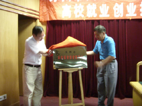 隨后,蘇州市就業(yè)管理服務(wù)中心洪偉芳主任和鮑書記一起為高校就業(yè)創(chuàng)業(yè)指導(dǎo)站揭牌,這意味著模擬公司創(chuàng)業(yè)實訓(xùn)項目在蘇州的發(fā)展進入了一個新的階段。