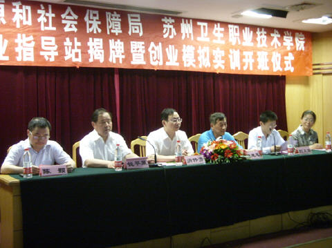 2011年5月10日,在蘇州衛(wèi)生職業(yè)技術(shù)學(xué)院舉辦了蘇州市人力資源和社會保障局、蘇州衛(wèi)生職業(yè)學(xué)院高校就業(yè)創(chuàng)業(yè)指導(dǎo)站揭牌暨創(chuàng)業(yè)模擬實訓(xùn)班開班儀式,出席本次儀式的領(lǐng)導(dǎo)有蘇州市大中專畢業(yè)生就業(yè)指導(dǎo)中心主任劉衛(wèi)國、蘇州市就業(yè)管理服務(wù)中心洪偉芳主任、蘇州市就業(yè)管理服務(wù)中心錢平原副主任等。