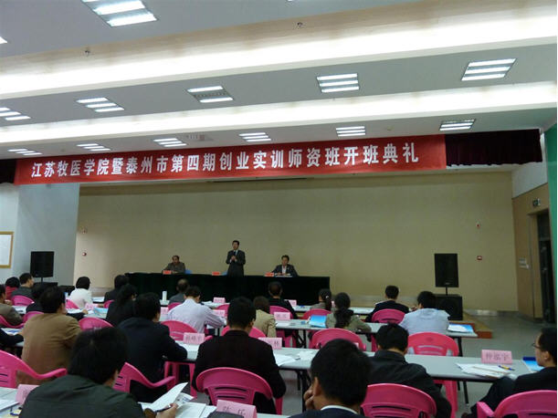 為進(jìn)一步推進(jìn)泰州市創(chuàng)業(yè)實訓(xùn)項目的開展,提高整體師資隊伍的水平,2011年10月21日,泰州市第四期創(chuàng)業(yè)實訓(xùn)(模擬公司)師資班開班儀式在江蘇畜牧獸醫(yī)職業(yè)技術(shù)學(xué)院的多功能報告廳舉行。創(chuàng)業(yè)就業(yè)處處長黃玉書、全球模擬公司聯(lián)合體中國(泰州)中心主任陸潮煒以及全國創(chuàng)業(yè)指導(dǎo)委員會專家石科明等共同出席了開班儀式。儀式由全球模擬公司聯(lián)合體中國(泰州)中心主任陸潮煒主持。