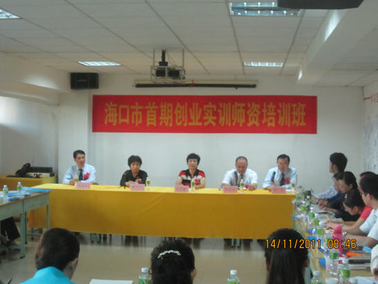 2011年11月14日,海口市第一期創(chuàng)業(yè)實(shí)訓(xùn)師資班開(kāi)班儀式在就業(yè)大廈舉行。海口市人力資源和社會(huì)保障局就業(yè)促進(jìn)處呂慶梅處長(zhǎng)、全球模擬公司聯(lián)合體中國(guó)中心張金富總監(jiān)、海口市職業(yè)能力開(kāi)發(fā)科秦?zé)ㄐ驴崎L(zhǎng)出席了開(kāi)班儀式。儀式由海口市人力資源開(kāi)發(fā)局李民副局長(zhǎng)主持。
