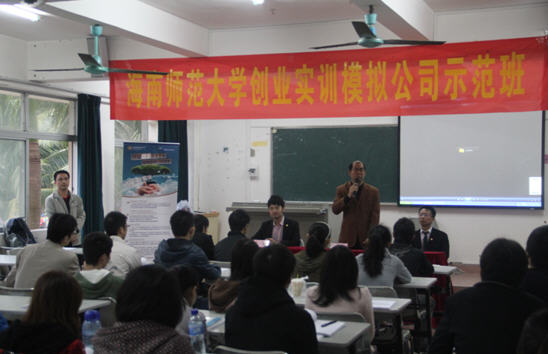 2012年1月9日,海口人力資源和社會(huì)保障局和海南師范大學(xué)合作舉辦的首期創(chuàng)業(yè)實(shí)訓(xùn)模擬公司示范班在海南師范大學(xué)開班。 近50名同學(xué)分成了6個(gè)小組,成立了千諾物業(yè)有限公司,天運(yùn)大酒店模擬公司,遠(yuǎn)景國(guó)際旅游模擬公司,海南省海口市鵲橋緣婚慶模擬有限公司,萬豪汽車銷售模擬有限公司,柒艾傳媒模擬有限公司。他們?cè)谔摂M的公司里學(xué)習(xí)怎么當(dāng)老板,除沒有實(shí)體產(chǎn)品外,從簽合同到付款,都和現(xiàn)實(shí)的交易一樣。從如何擬定創(chuàng)業(yè)計(jì)劃書、創(chuàng)辦企業(yè)、進(jìn)行工商注冊(cè)、稅務(wù)登記等,甚至在企業(yè)運(yùn)營(yíng)中如何降低水電、房租、人力成本等各方面步驟上進(jìn)行指導(dǎo)性的訓(xùn)練。
