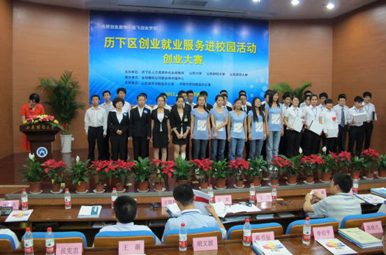為進(jìn)一步引導(dǎo)大學(xué)生轉(zhuǎn)變就業(yè)觀念,提高大學(xué)生創(chuàng)業(yè)能力,促進(jìn)高校畢業(yè)生成功就業(yè)創(chuàng)業(yè),2012年6月21日,由濟(jì)南市歷下區(qū)人力資源和社會(huì)保障局主辦,全球模擬公司聯(lián)合體中國(guó)中心承辦的歷下區(qū)創(chuàng)業(yè)就業(yè)服務(wù)進(jìn)校園活動(dòng)創(chuàng)業(yè)大賽活動(dòng)在山東財(cái)經(jīng)大學(xué)舉辦。本屆大賽以"點(diǎn)燃創(chuàng)業(yè)激情、放飛創(chuàng)業(yè)夢(mèng)想"為主題,出席大賽的領(lǐng)導(dǎo)有山東省人力資源和社會(huì)保障廳副廳長(zhǎng)李伯平,山東省財(cái)經(jīng)大學(xué)副校長(zhǎng)胡文波,山東省勞動(dòng)就業(yè)辦公室主任畢京福,濟(jì)南市人力資源和社會(huì)保障局局長(zhǎng)蔣曉光,歷下區(qū)人民政府副區(qū)長(zhǎng)劉科,歷下區(qū)人力資源和社會(huì)保障局局長(zhǎng)吳明等領(lǐng)導(dǎo)。全球模擬公司聯(lián)合體中國(guó)中心主任、正保遠(yuǎn)程教育集團(tuán)副總裁孫洪峰應(yīng)邀出席了本屆大賽。