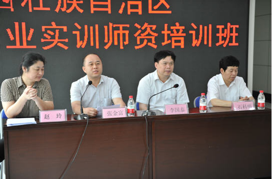 2012年6月12日-18日,由廣西壯族自治區(qū)就業(yè)局主辦的首期創(chuàng)業(yè)實(shí)訓(xùn)(模擬公司)項(xiàng)目師資培訓(xùn)班在區(qū)就業(yè)局二樓招聘大廳舉行。區(qū)就業(yè)局李國(guó)泰局長(zhǎng)、趙玲副局長(zhǎng)、北京正保育才教育科技有限公司市場(chǎng)總監(jiān)張金富和全國(guó)創(chuàng)業(yè)培訓(xùn)工作指導(dǎo)委員會(huì)專(zhuān)家顧問(wèn)團(tuán)石科明副主任等領(lǐng)導(dǎo)和嘉賓出席了本次培訓(xùn)班的開(kāi)班典禮。