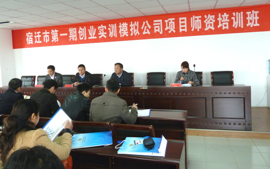 2013年4月22日上午,宿遷市首期創(chuàng)業(yè)實訓(xùn)模擬公司項目師資培訓(xùn)班在宿遷市人力資源培訓(xùn)中心舉辦。來自宿遷學(xué)院及市高等院校的35名老師,參加了為期七天的由全球模擬公司聯(lián)合體中國中心專家親自授課的創(chuàng)業(yè)實訓(xùn)模擬公司項目師資培訓(xùn)。市就管中心張永生主任出席會議并講話。