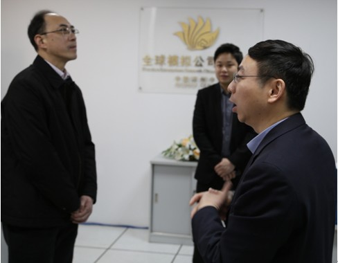 洪主任(右)陪同陳主任(左)參觀全球模擬公司中國(guó)(蘇州)中心辦公室