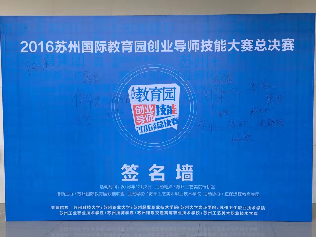 為深入貫徹高校創(chuàng)業(yè)教育工作部署的精神,做好蘇州市大學生創(chuàng)就業(yè)指導服務工作,激發(fā)創(chuàng)業(yè)熱情,培育創(chuàng)業(yè)服務文化,提升大學生創(chuàng)業(yè)指導師資工作的整體水平, 2016年12月2日,由蘇州國際教育園眾創(chuàng)聯(lián)盟主辦,蘇州工藝美術職業(yè)技術學院承辦,正保遠程教育集團協(xié)辦策劃2016蘇州國際教育園創(chuàng)業(yè)導師技能大賽在蘇州工藝美術職業(yè)技術學院瑞耕堂圓滿落幕。