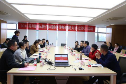 11月21 日下午,2016蘇州國際教育園創(chuàng)業(yè)導師技能大賽之沙龍活動在蘇州工藝美術職業(yè)技術學院中層干部會議室舉行,當天蘇州國際教育園管理辦公室副主任賴文祎,教管辦國際合作與教育培訓處處長倪忠平,蘇州市職業(yè)大學副校長熊貴營,蘇州經(jīng)貿(mào)職業(yè)技術學院副院長朱偉峰,蘇州工藝美術職業(yè)技術學院副院長張華,學工處處長張繼玉、副處長周婷,北京正保育才教育科技股份有限公司蘇州分中心總經(jīng)理王代翔以及國際教育園各高校參賽教師、領導出席了此次沙龍交流。