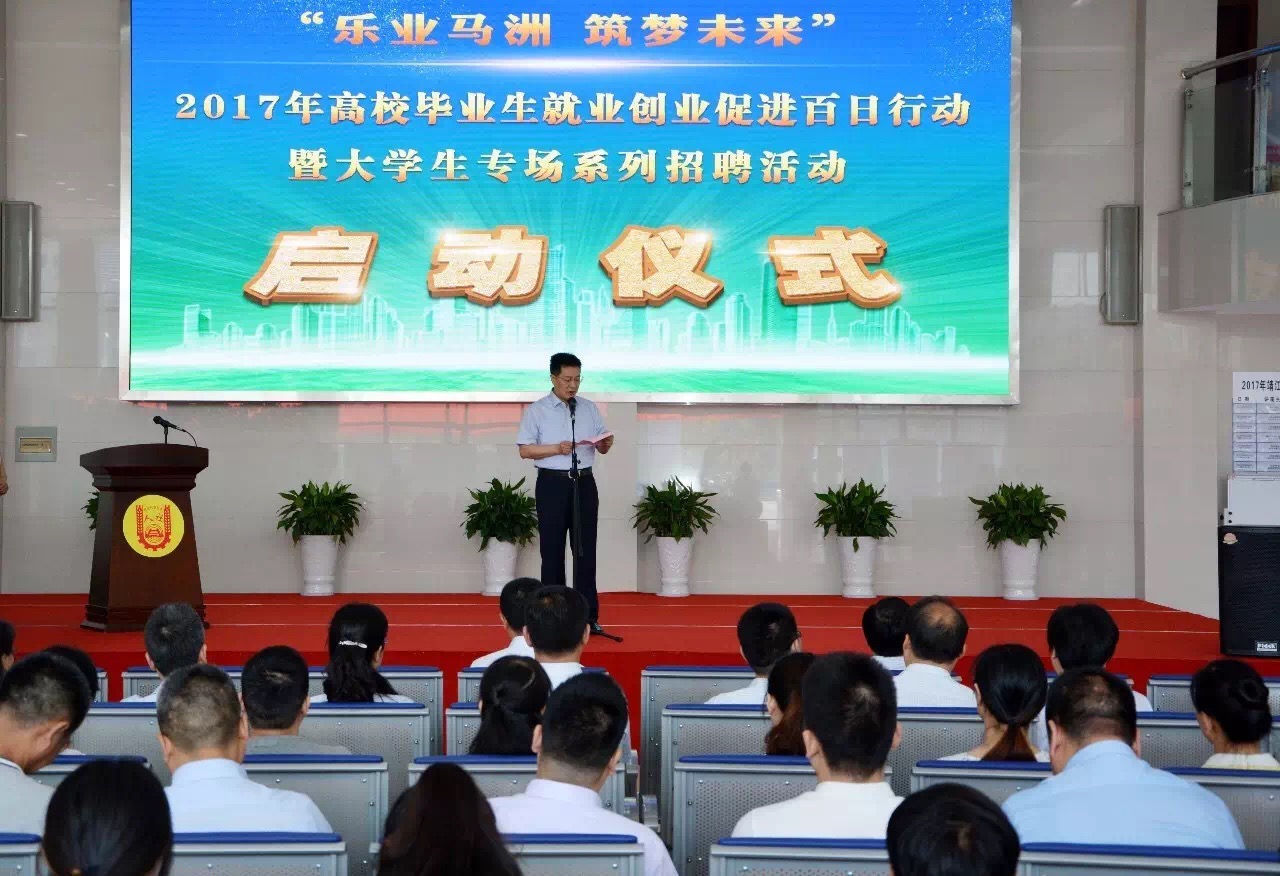 2017年6月11日,靖江市“樂業(yè)馬洲,筑夢未來”2017年高校畢業(yè)生就業(yè)創(chuàng)業(yè)促進百日行動暨大學生專場系列招聘活動在市人社局人力資源服務中心正式啟動。市委常委、常務副市長沈南松出席活動并致辭。市人社局黨委書記、局長范新宏主持了啟動儀式。