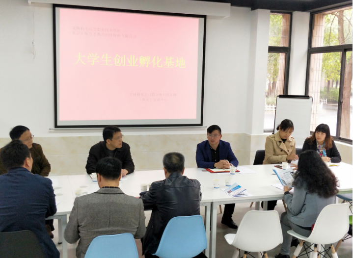 顧局長一行在無錫機(jī)電莫校長帶領(lǐng)下逐一考察了實(shí)訓(xùn)中心創(chuàng)業(yè)工作區(qū)、教學(xué)區(qū)、創(chuàng)客功能區(qū)、成果展示區(qū)。莫校長、費(fèi)主任分別介紹了無錫機(jī)電學(xué)校概況、專業(yè)情況、學(xué)校特色以及實(shí)訓(xùn)中心的建設(shè)理念和發(fā)展方向,重點(diǎn)強(qiáng)調(diào)了創(chuàng)業(yè)團(tuán)隊(duì)的孵化與扶持,希望能夠在政府及企業(yè)的支持下更好的服務(wù)于創(chuàng)業(yè)團(tuán)隊(duì);正保育才無錫中心袁總結(jié)合現(xiàn)有的企業(yè)資源,就課程共建、項(xiàng)目引入、服務(wù)體系等方面介紹了與無錫機(jī)電共建實(shí)訓(xùn)中心的具體實(shí)施內(nèi)容,旨在加強(qiáng)實(shí)訓(xùn)實(shí)踐,引進(jìn)企業(yè)進(jìn)行成果轉(zhuǎn)化,定期開展創(chuàng)業(yè)沙龍、講座、項(xiàng)目路演活動(dòng),更好地服務(wù)于創(chuàng)業(yè)者。